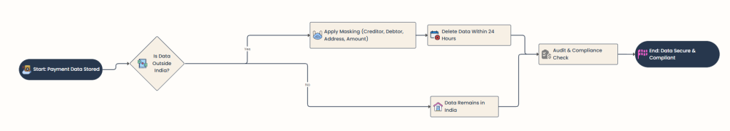 3. Cross-Border Data Deletion (24-Hour Rule): Any customer information for payment transactions MUST be deleted from non-India servers within 24 hours. The clock starts ticking as soon as the data leaves Indian jurisdiction.