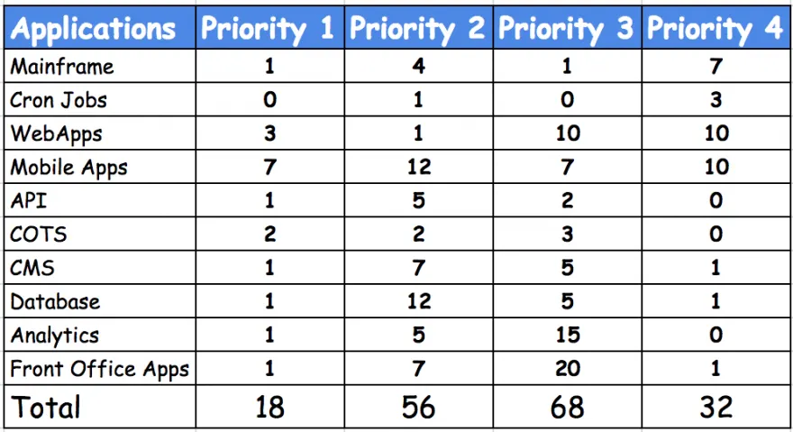 => Applications vs Defect Priority Report